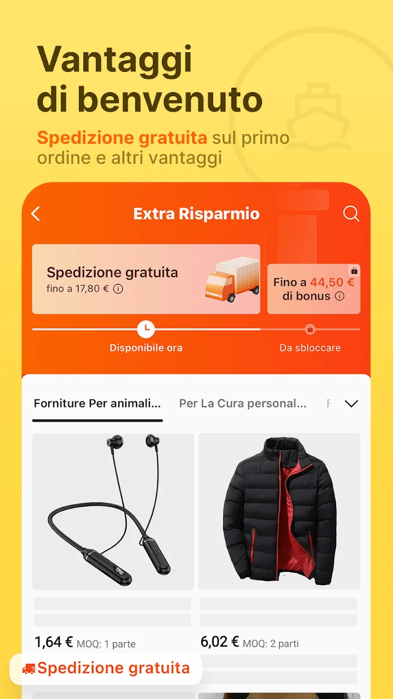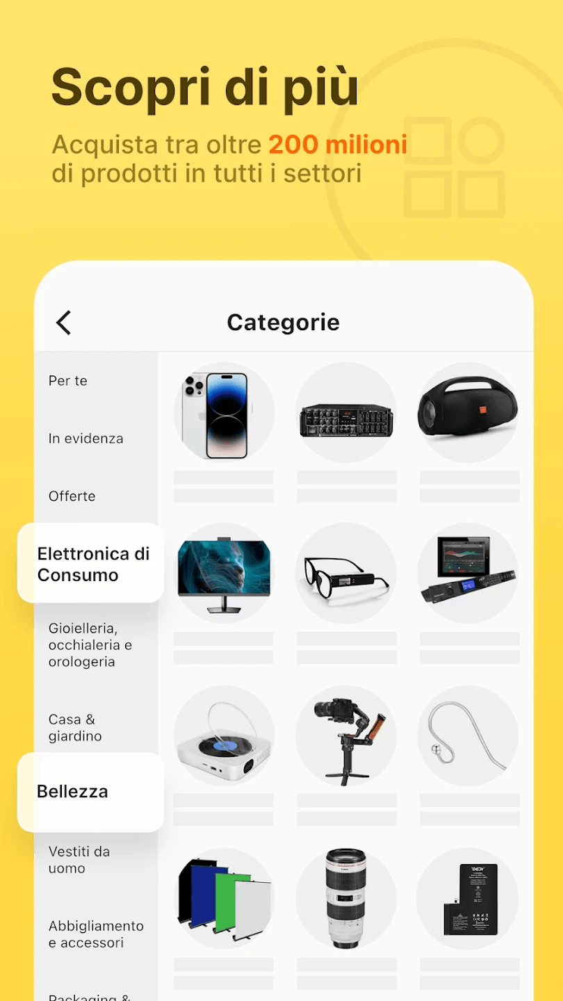 Al primo avvio di Alibaba.com, verrai guidato attraverso una rapida procedura di accesso che salva le tue informazioni di base, rendendo i futuri acquisti più veloci. Dalla schermata principale dell’app, potrai visualizzare numerosi articoli in evidenza e accedere alle sezioni principali per trovare qualsiasi prodotto desideri. Inoltre, nella parte superiore dell’app è presente una semplice barra di ricerca per risparmiare tempo.