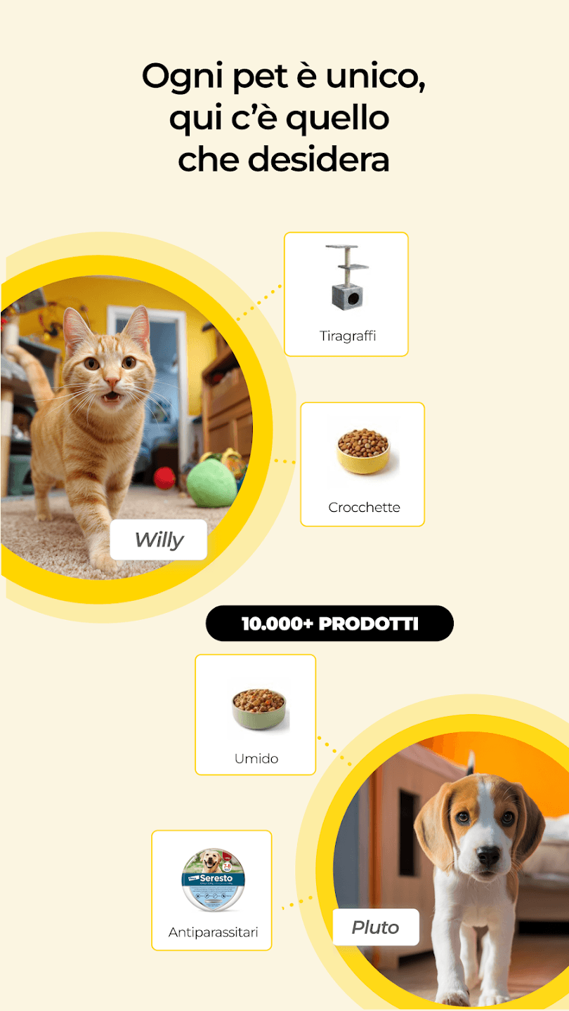 Arcaplanet offre una funzione unica che ti consente di creare profili dettagliati per i tuoi animali, ricevendo così consigli personalizzati sui prodotti più adatti alle loro esigenze. Questa esperienza su misura ti aiuta a trovare facilmente gli articoli più rilevanti per i tuoi amici a quattro zampe o con le piume.