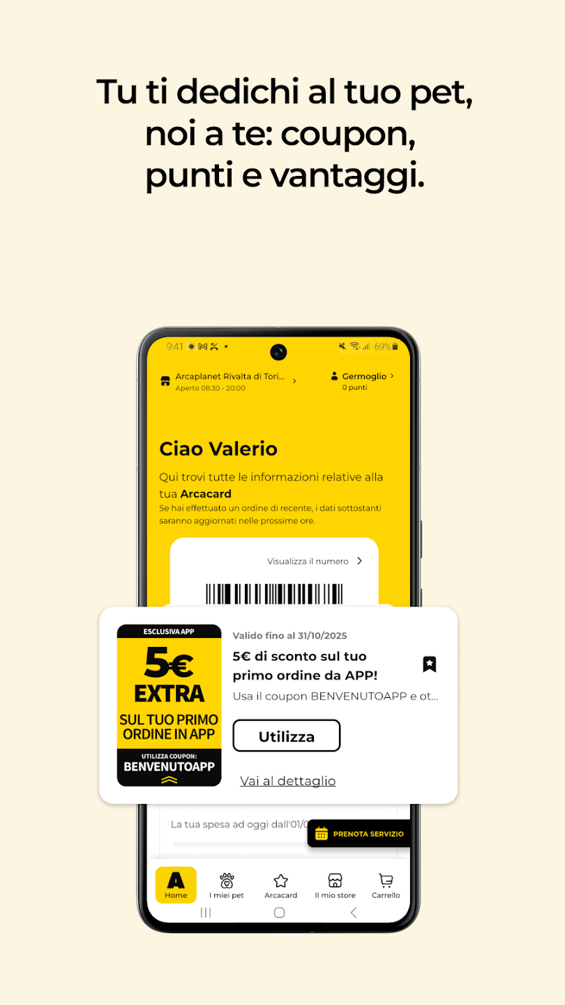 Uno dei punti di forza di Arcaplanet è il programma fedeltà Arcacard integrato, che ti permette di avere sempre la tua carta digitale a portata di mano. Accumula punti a ogni acquisto e riscattali sotto forma di coupon sconto da utilizzare in negozio o tramite l’app.