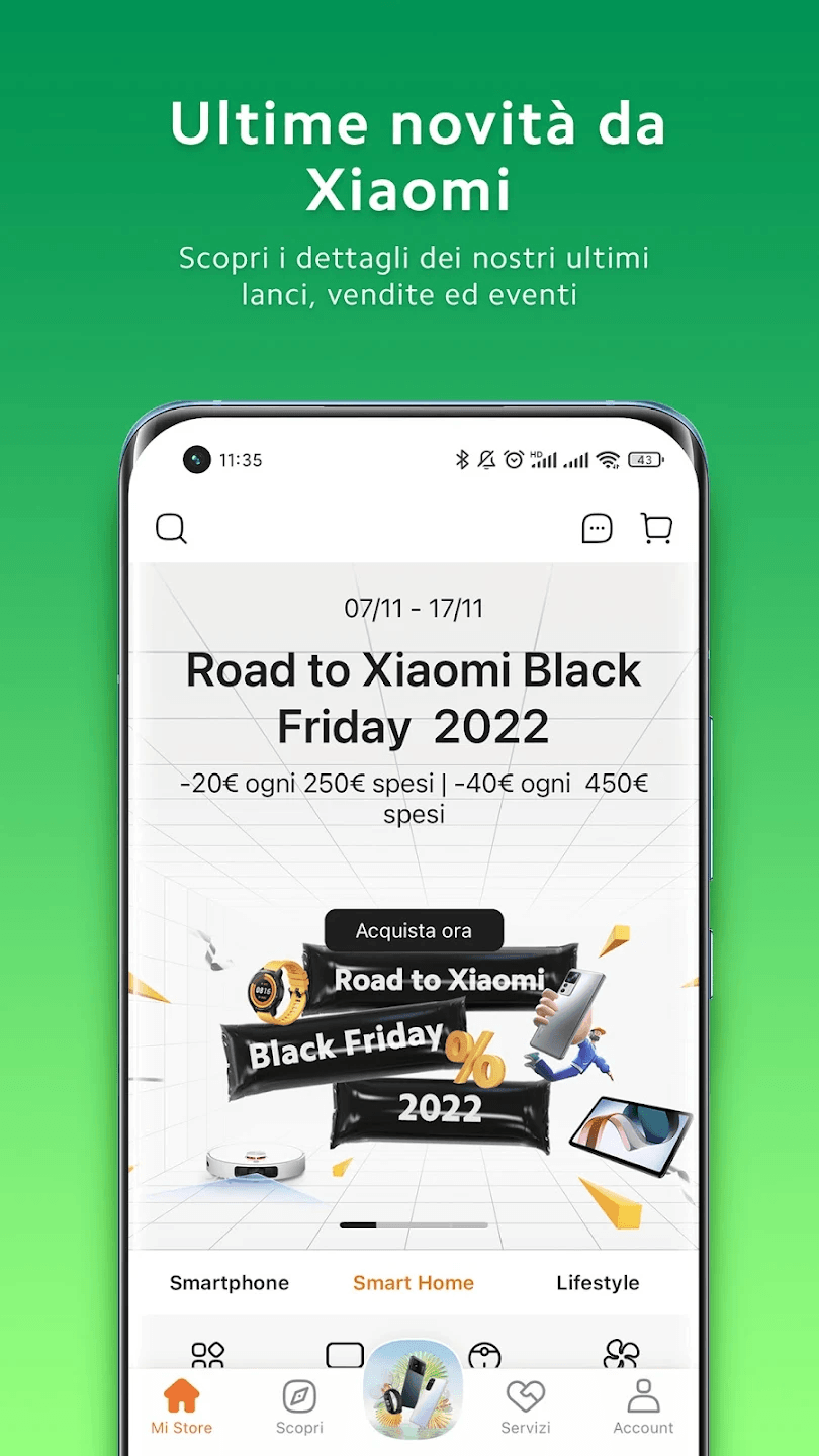 Mi Store è l’app ufficiale del negozio Xiaomi, dove puoi acquistare quasi tutti i prodotti di questo noto marchio cinese, dai telefoni agli scooter, cuffie, aspirapolvere, router e persino auto elettriche. Grazie all’app, puoi ordinare facilmente e ricevere i prodotti a casa in pochi giorni.